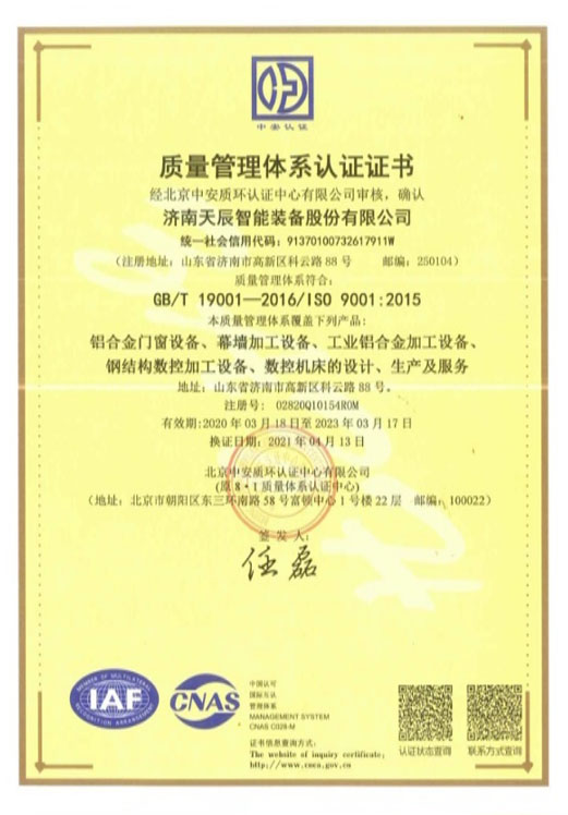 天辰獨立起草的鋁型材加工中心國家標準《GBIT28390-2012》頒布實施 研制鋁型材鋸切中心(實現本土化生產)