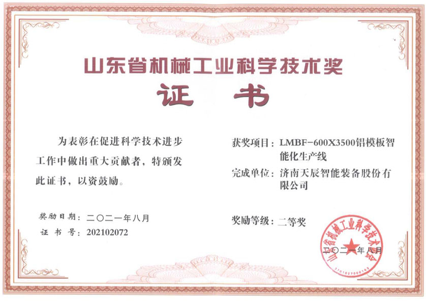 研發出國內首條“鋁模板鋸沖銑自動生產線”,并成功推向市場 該生產線獲評山東省首臺(套)技術裝備