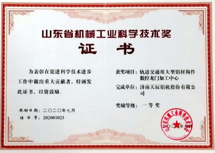 為中國高鐵定制研發的“新型超長數控龍門四軸加工中心”交付中國中車的配套企業使用,打破了同類設備完全依賴進口的局面 該項目獲批山東省重大科技創新項目,并獲評山東省科技進步一等獎。