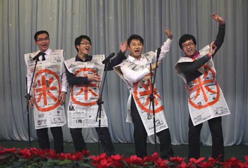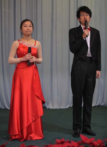 此次聯歡會由青春靚麗的新人擔任主持,聯歡會在鋁機公司趙美東的《歡樂中國年》中帷幕,車庫公司何琦深情款款的男聲獨唱《沒離開過》聽得大家意猶未盡;劉文嬋和王佳自編自演的相聲《普通話》妙趣橫生,引得臺下爆笑不斷;男聲小合唱《換大米進行曲》詼諧幽默的表演贏得大家陣陣掌聲;由領導參與《猜成語》的互動游戲把現場的氣氛推向了高潮;時尚動感的街舞、情感真摯的自彈自唱《老男孩》,以及超高難度的和聲《威廉退爾序曲》等精彩節目接二連三目不暇接;壓軸舞蹈《荷塘月色》以其精湛的表演取得了滿場喝彩。