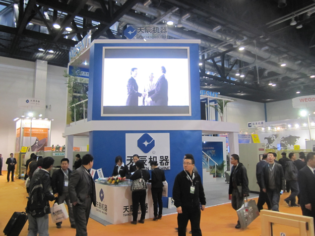 天辰鋁機公司在本次博覽會上訂購了最大的展位,以全新的形象展現了做為行業領頭羊的風采,展出了四軸數控加工中心、9米三軸雙工作臺數控加工中心、數控鉆銑床、自動走刀式銑榫機、6米任意角數控雙頭精密切割鋸、6米數控雙頭精密切割鋸、角碼數控切割鋸床、數控四頭組角機、單頭組角機等九臺鋁門窗、幕墻類加工設備,尤其是天辰鋁機新研發推出的木窗加工中心設備,也精彩亮相,充分的顯示了天辰鋁機公司領先同行業的技術水平及強大的新產品研發能力。