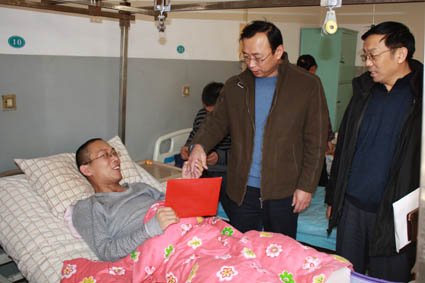 ??? 1月25日,高新區總工會主席宋豐華、副主席王泰松等人前往濟南市立三院病房,看望了我公司因意外傷害住院的郭登興,送上?面粉、食用油、牛奶等生活用品和慰問金,并送上新春祝福和節日問候。